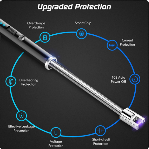- 360°FLEXIBLE ELECTRIC PLASMA LIGHTER : Candle lighter made of stainless steel long neck and angled lighter head will help you comfortably and accurately light up the hardest to reach candles, stoves, barbecues, and more. And will keep your hands safely away from the action and keep your fingers burn-free.