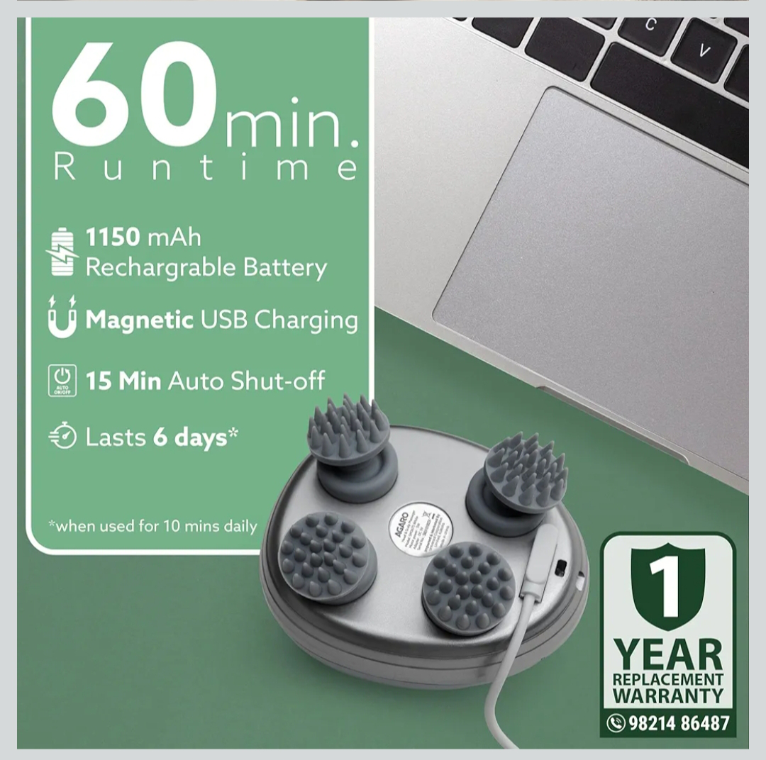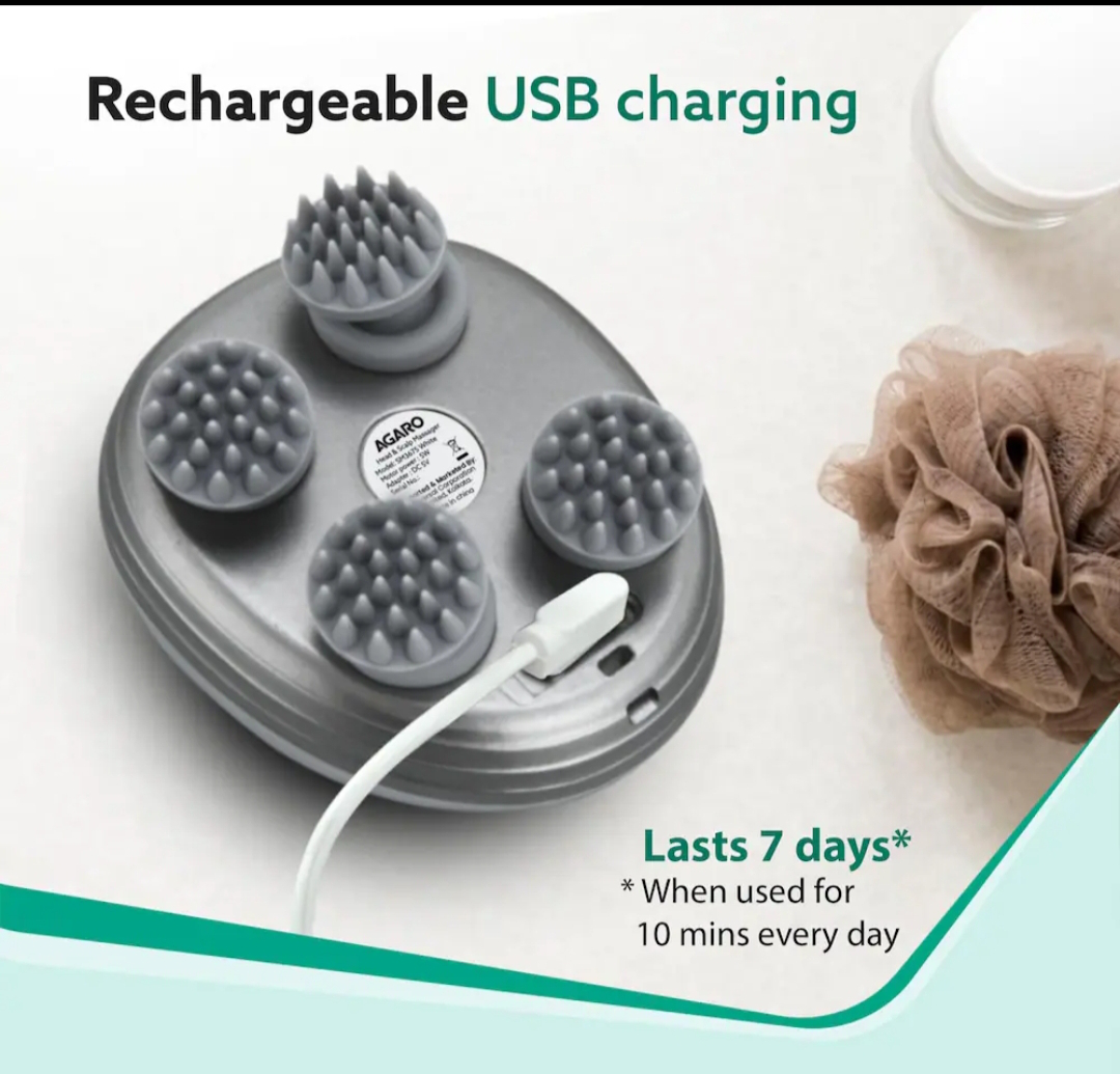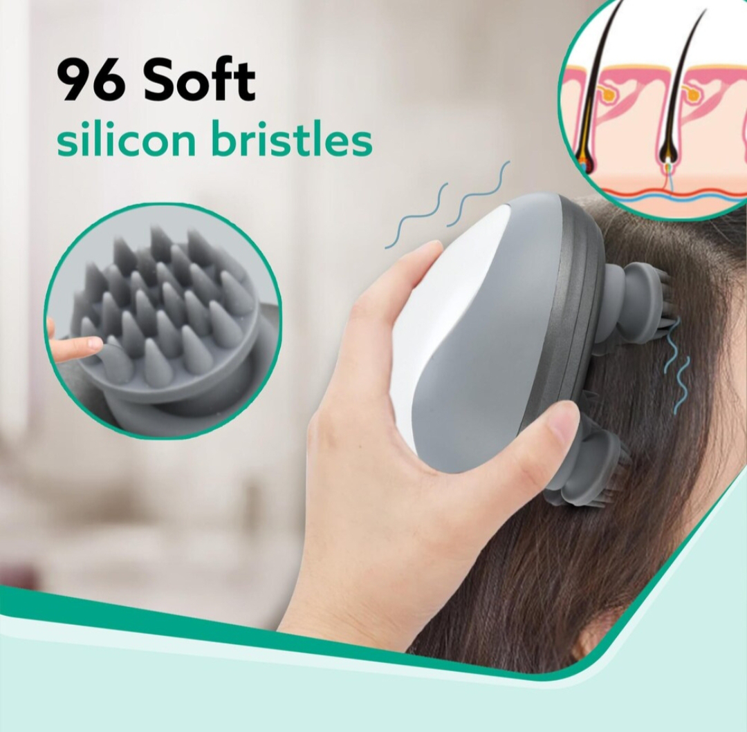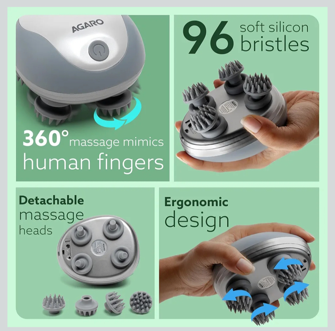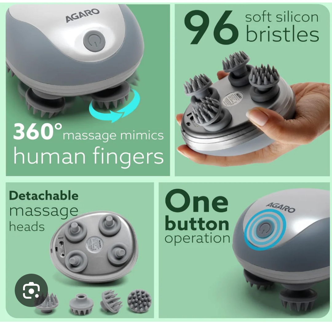 Head and scalp massager has four heads which rotates both in clockwise and anti-clockwise direction giving you a soothing massage to help stimulate hair growth, remove stress and deep hair clean.